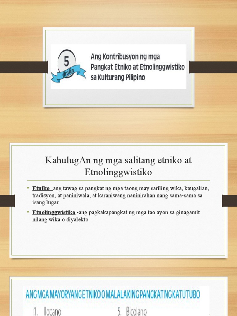 Aralin 5 Kontribusyon Ng Mga Pangkat Etniko At Etnolinggwistiko Sa Kulturang Pilipino Pdf